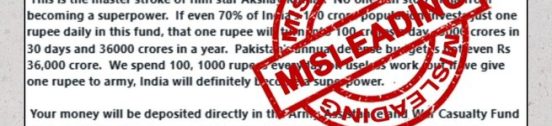 There is a misleading message doing the rounds on WhatsApp pertaining to donation to a particular bank account for the modernisation of the Indian Army and for the soldiers injured or killed in action. The message quotes a Cabinet decision to this effect and invokes the name of actor Shri Akshay Kumar as being the … Continue reading Indian Army Donation Scam Alert: Only Official Channels Valid, Clarifies Defence Ministry