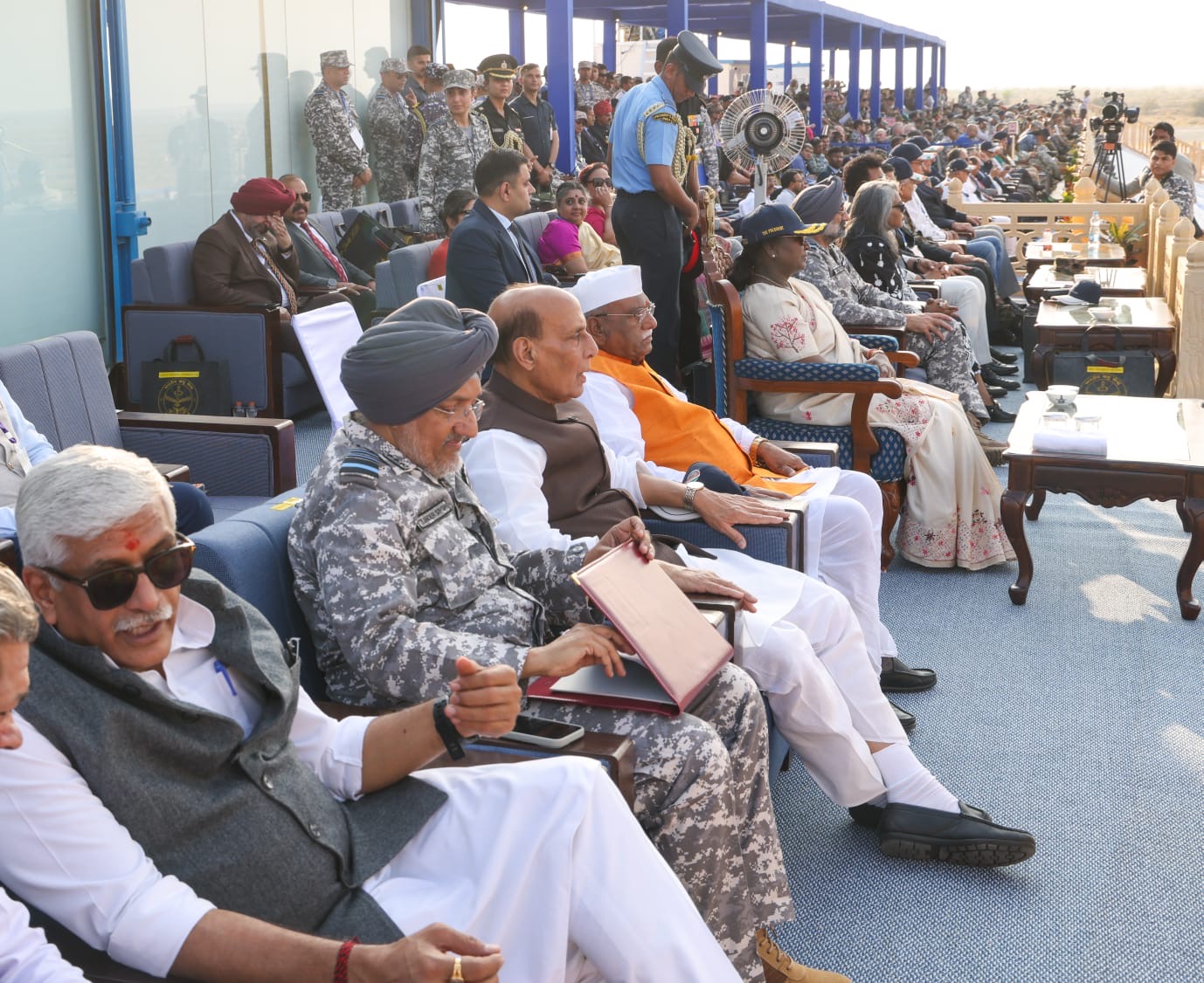 The exercise was witnessed by President Smt Droupadi Murmu, in her role as Supreme Commander of the Armed Forces, underscoring the national importance of the demonstration. Defence Minister Shri Rajnath Singh, Chief of the Air Staff Air Chief Marshal A P Singh, senior military commanders and state leadership were also present.